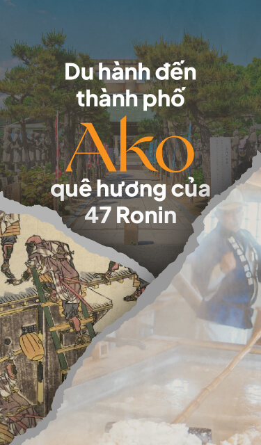 Là thành phố nhỏ nằm ở cực Nam của tỉnh Hyogo, Ako là điểm đến thú vị dành cho những ai muốn tìm kiếm những nơi xa xôi ít người biết đến để “trốn thế giới”. Dù có lẽ không quá nổi tiếng với du khách nước ngoài nhưng Ako chính là nơi dành cho những trái tim yêu văn hóa và lịch sử Nhật Bản, bởi đây là nơi bắt đầu của giai thoại kinh điển về sự trả thù của 47 Ronin, từng được Nhật Bản và Hoa Kỳ dựng thành phim. Hơn nữa, Ako còn mang du khách ngược dòng thời gian tìm về kiến trúc truyền thống và phương pháp sản xuất muối từ xa xưa.