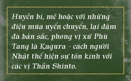 Không chỉ là nghi lễ linh thiêng trong Thần đạo, sự đa dạng, phong phú với nhiều thể loại khác nhau để phù hợp với từng hoàn cảnh của điệu Kagura đã góp phần tạo nên tính đa sắc, hấp dẫn và độc đáo của văn hóa xứ anh đào.